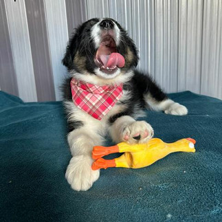 Mit einer Schulterhöhe von 35 cm mag sie zwar klein sein, aber ihr Aussehen verrät ihre wahre Natur - sie ist wie eine kleine Mischung aus Australien Shepherd und Abenteurerin!