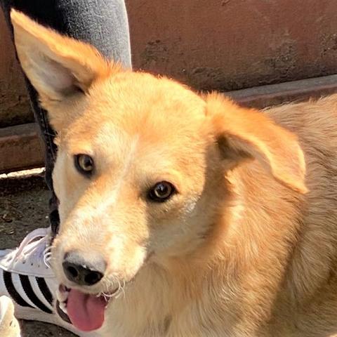 Mama Fairy ist eine kleine Hündin, sie hat eine Schulterhöhe von 45 cm und ein Gewicht von ca.10 Kilos. Mit ihren kurzen Beinen und dem im Verhältnis langen Rücken schaut sie aus, wie ein tiefer gelegter goldblonder Labbi-Mix. Ihre Ohren kann sie nach Lust und Laune wie ein Füchschen aufstellen oder als Schlappöhrchen hängen lassen.