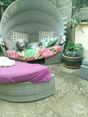 Henri wohnt nun mit Tinka, Scarlett, Yuna (alle sind von Iuliana 🙂), zwei weiteren Hunde und zwei Katzen zusammen. Henri war von der ersten Minute an relaxt und freundlich.
