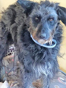 Hier musste sofort etwas geschehen und Manolis Freundin kümmerte sich gleich selbst um den Streuner. Irvin durfte sich erst einmal satt essen und bekam anschließend ein ausgiebiges Bad mit Hundeshampoo. Und nachdem mit vorsichtiger Hand das Fell im Gesicht und am Kopf geschnitten war - siehe da - kam ein hübscher Wasserhund-Mischling zum Vorschein!