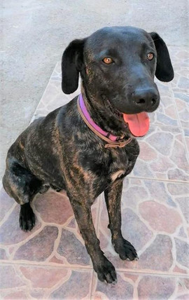 Kiko ist eine sehr gelungene Mischung aus Labrador und Windhund mit einem ausgesprochen edlen Erscheinungsbild. Sein kurzes Fell ist schwarz-beige gestromt und besonders auffallend sind die strahlend haselnussbraunen Augen. Er hat eine Schulterhöhe von 64 cm und wiegt 28 Kilos.