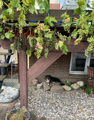 Meist liegt er unter der Verandatreppe im Schatten und bewacht den Hof. Ich glaube, das hat er sich als seine große Aufgabe auserwählt. Er ist am liebsten zuhause und passt auf alles auf.😄