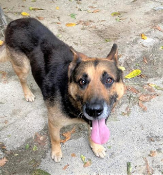 Nero ist ein wunderschöner Deutscher Schäferhundmischling in der typischen Fellfarbe „black and tan“ und mit grauem Schnäuzchen. Seine Augen blicken klar und vertrauensvoll in die Kamera. Unser Senior ist ein großer Hund mit ca. 70 cm Schulterhöhe und einem Gewicht von 28 Kilo.