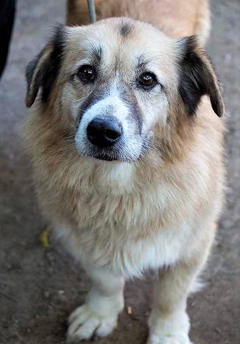Mit ihren 43-45 cm Schulterhöhe und geschätzten knapp 20 kg ist sie nur mittelgroß und erinnert durch ihre Fellstruktur und -farbe an einen Mini-Goldie-Mix. Ihr wunderschönes dichtes Fell in crème und gold lässt sie sich gerne bürsten. In ihrem hübschen Gesicht dominieren die graue Maske und die dunkelbraunen Kajal-Augen.