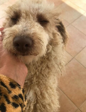 Unser Wasserhund-Mix, sucht jetzt seine Menschen...In der Pension zeigt er sich von seiner besten Seite...Im neuen Outfit...