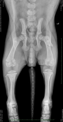 Die Diagnose lautete, neben etlichen schmerzhaften Prellungen: Oberschenkelbruch des linken Hinterlaufs!