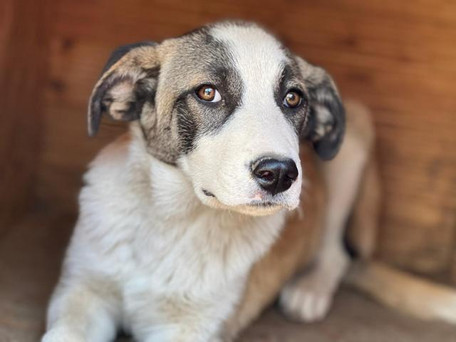 Rumänien/Bukarest - Team Gabriela: Patch ist ein im Dezember 2021 geborene Mischlingshündin, die in Bukarest auf ihre Direktadoption wartet.