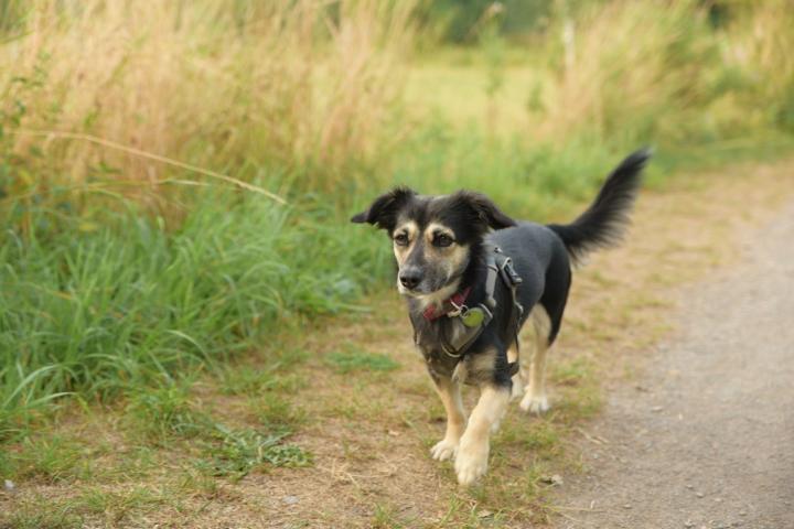 Bella ist ein eher sensibler und vorsichtiger Hund und nachdem sie von einer anderen Hündin gebissen wurde, bleibt sie bei fremden Hunden und Personen lieber abwartend stehen oder sucht auch schon mal Schutz bei ihren Menschen.