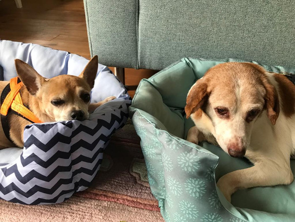 Yayo hört und sieht fast nicht und hat die ersten Wochen gebraucht, um seinen neuen Menschen und seinen Hundekumpel Camillo kennenzulernen und sich in Haus und Garten zu orientieren.